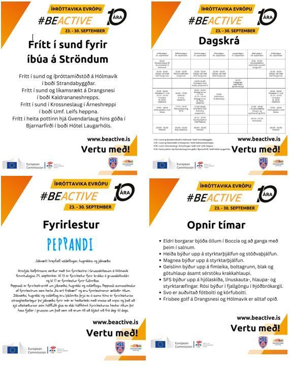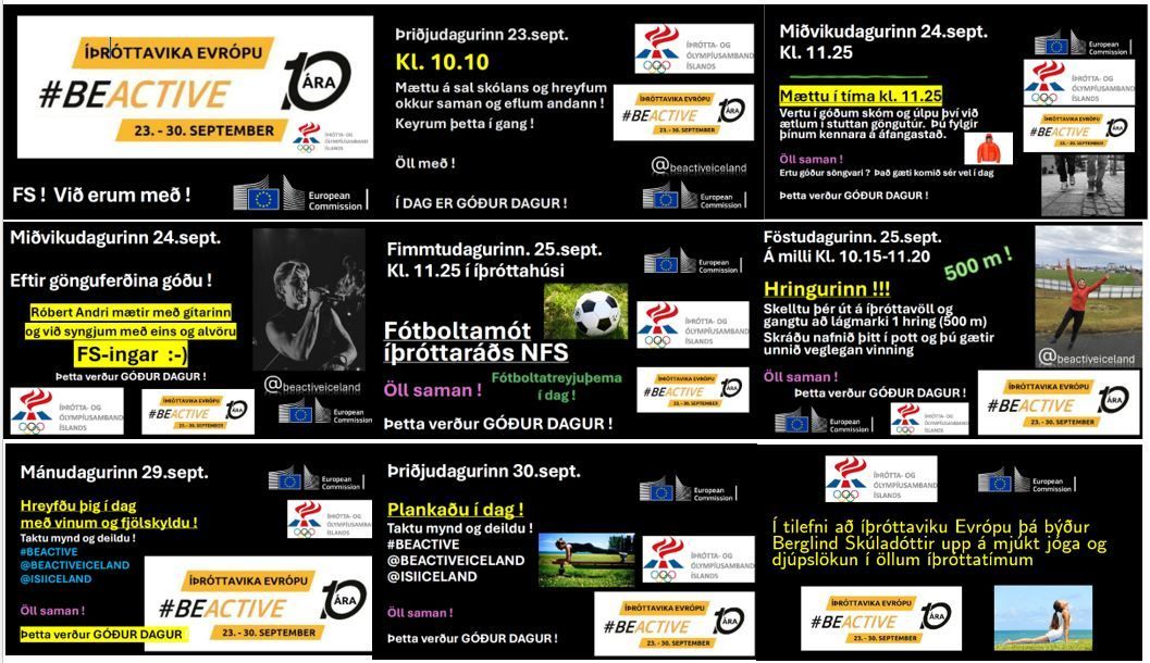 Hér má sjá yfirlit yfir alla viðburði sem eru í boði á íþróttaviku evrópu