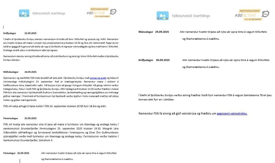 Fjölbrautaskóli Snæfellinga - 23. - 30. september